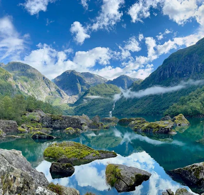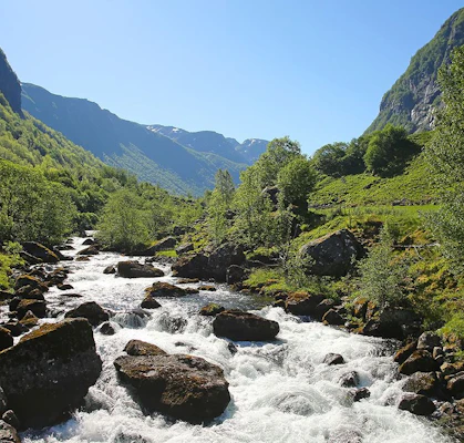 From Blåbærsletta, we drive through beautiful fjord and mountain scenery towards the Hardangerfjord. On narrow roads, we pass lush valleys and charming small villages, where you can catch a glimpse of local life. Keep your eyes open for the many waterfalls plunging down the mountainsides—an impressive sight that truly shows the power of nature.