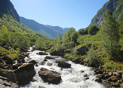 Set at the foot of the Bondhusbreen Glacier in Folgefonna National Park, the hike to Bondhus Lake follows an easy historic route.
