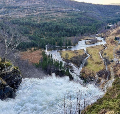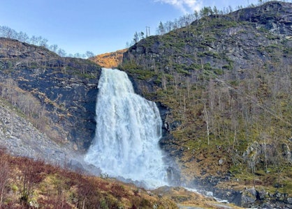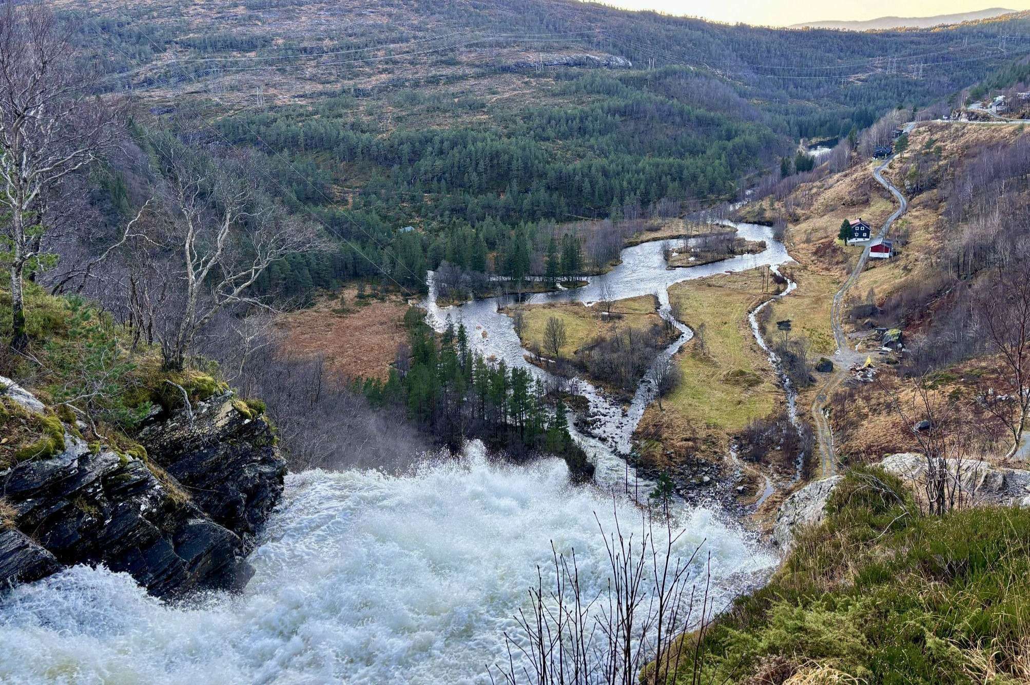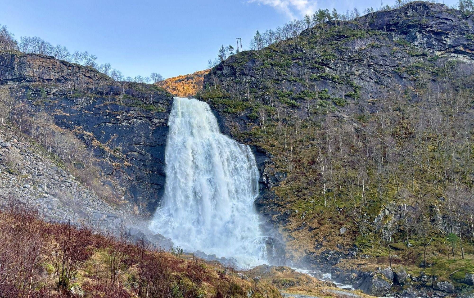 One of the most dramatic waterfalls along the route, Fossen Bratte – often called “The Bride’s Veil” because of its elegant white spray – is known for its impressive 80-meter drop and the powerful roar that echoes through the valley.