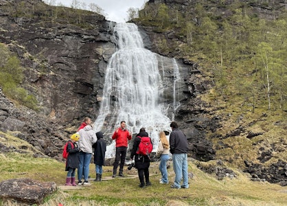 Vi blir ved Steinsdalsfossen i omtrent 30 minutter.