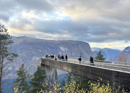 Stegastein is a spectacular viewing platform that stretches 30 metres out from the mountainside, 650 metres above the Aurlandsfjord.