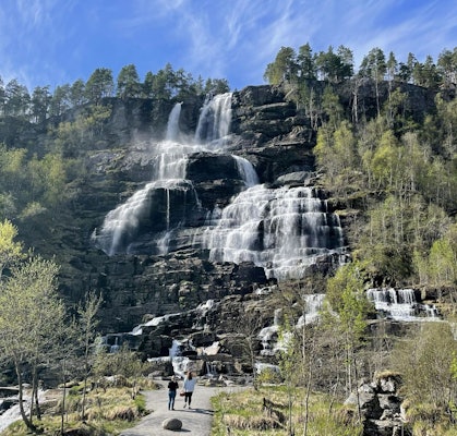 Here, we enjoy coffee and freshly made Norwegian waffles while taking in the unbeatable view – a perfect stop that combines cultural heritage, natural beauty, and Western Norwegian hospitality. After that we visit Tvindefossen waterfall before heading back to Bergen.
